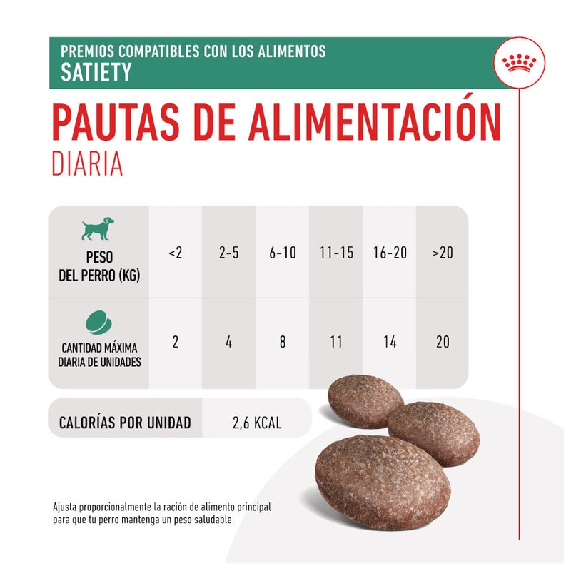 Se deben dar como premio ocasional. Ajustar la ración si se ofrecen varios snacks y controlar el peso del perro con apoyo veterinario.