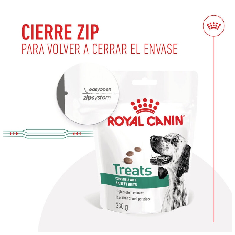 Snack dietético para perros con exceso de peso, creado con bajo aporte calórico y alto nivel proteico para favorecer el control de peso mientras disfrutan de un premio saludable.