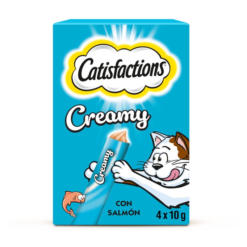 El Catisfactions Creamy Snack de Salmón es un snack cremoso, saludable y delicioso ideal para gatos adultos y gatitos desde las 8 semanas. Preparado con salmón natural, aporta proteínas de alta calidad, taurina y vitaminas que promueven una piel sana, un pelaje brillante y un sistema inmunitario fuerte.