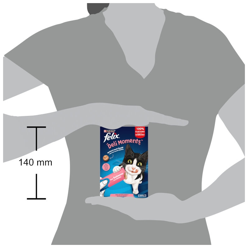 Haz que tu gato disfrute de momentos inolvidables con el snack líquido con salmón de Felix Deli Moments. Una mezcla deliciosa de sabor intenso a salmón y textura cremosa que encantará a tu compañero, ideal para consentirlo o premiar conductas positivas.