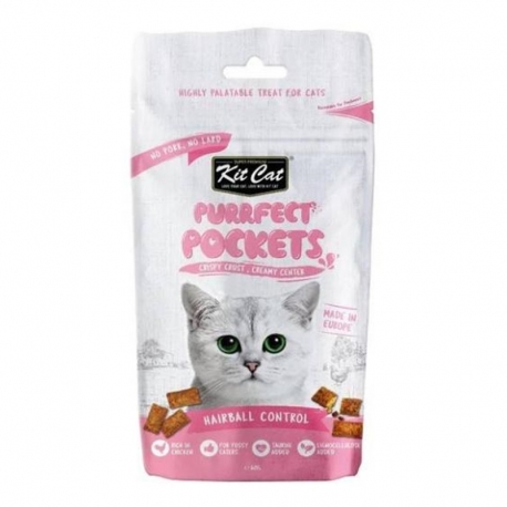 El Kit Cat Purrfect Pockets Control Bolas de Pelo es una golosina innovadora diseñada para premiar a tu gato mientras apoya su bienestar. Con una textura dúo única, este snack tiene un exterior crujiente que proporciona un sonido divertido y un centro suave lleno de sabor, creando una experiencia de golosina única y deliciosa. Hecho con ingredientes naturales, este snack es la opción perfecta para gatos, incluso para aquellos más exigentes.