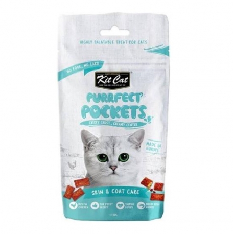 El Kit Cat Purrfect Pockets Cuidado de Piel y Pelaje es una golosina deliciosa y nutritiva, diseñada para premiar a tu gato mientras cuida su salud. Con una textura dúo, este snack tiene un exterior crujiente que proporciona un divertido crujido, y un centro suave y delicioso lleno de sabor. Hecho con ingredientes naturales, ayuda a mantener el bienestar de tu felino, favoreciendo la salud de su piel y pelaje.