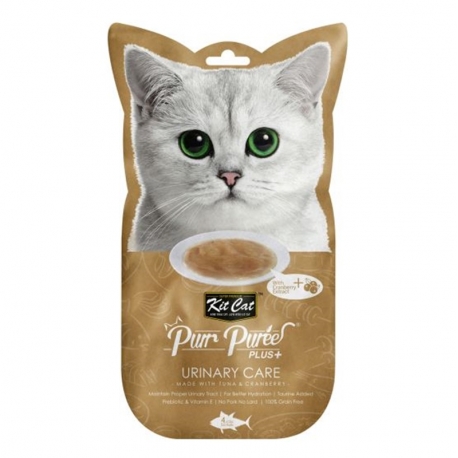 ¡Dale a tu gato un delicioso premio con Kit Cat Snack PurrPurée Plus Urinary Care con Atún y Arándanos, un snack saludable que cuidará su salud urinaria y su bienestar general!