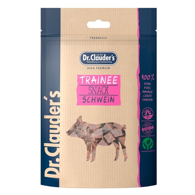 Los Dr. Clauder’s Trainee Schwein Snack están hechos con carne de cerdo 100% natural, deshidratada suavemente para mantener su aroma y nutrientes esenciales. Son snacks ligeros, sin cereales ni azúcares, perfectos para adiestrar o recompensar de forma saludable.