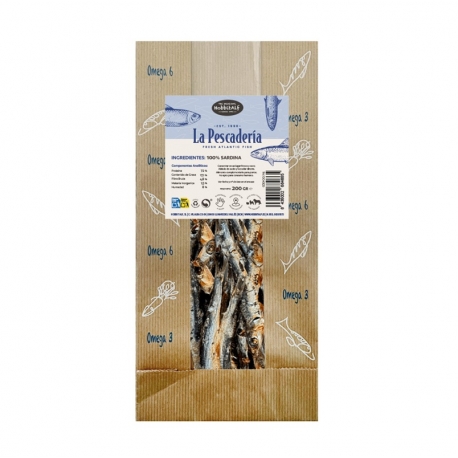 Este premio natural de sardinas está elaborado con pescado azul 100%, ofreciendo una fuente excelente de proteína marina con un sabor intenso muy apreciado por los perros. El proceso de deshidratado conserva su valor nutricional y textura crujiente sin necesidad de conservantes.