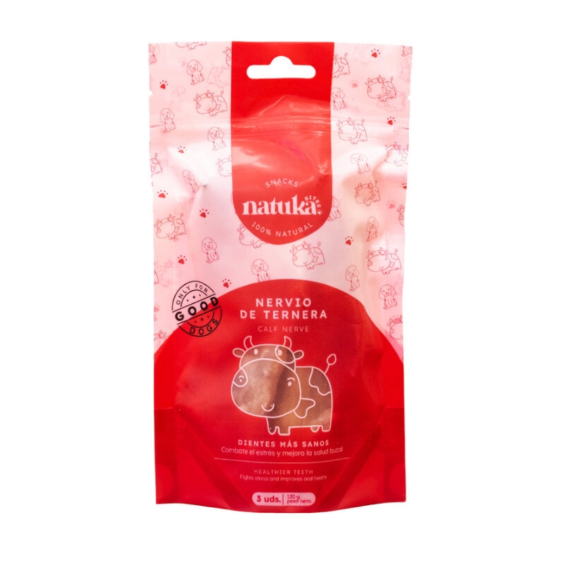 Masticable 100% natural a base de nervio de ternera deshidratado, libre de cereales y aditivos. Su consistencia firme ofrece minutos de masticación sostenida, ayuda a mantener dientes limpios y estimula el comportamiento de roer. Gracias a su aporte de colágeno y proteína magra, apoya el cuidado de articulaciones y músculos, siendo una elección saludable para perros amantes de los snacks naturales.