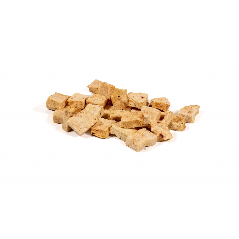 Snack natural al horno de bacalao, fuente de proteínas y Omega 3, ideal para perros que merecen una recompensa saludable que mejore piel, pelo y dientes.