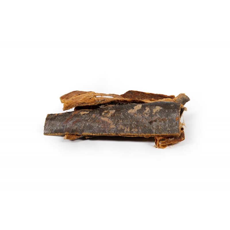 Snack natural de piel de atún para perros y gatos, rico en proteína y Omega 3, favorece la salud dental y mantiene piel y pelaje en buen estado mientras entretiene.