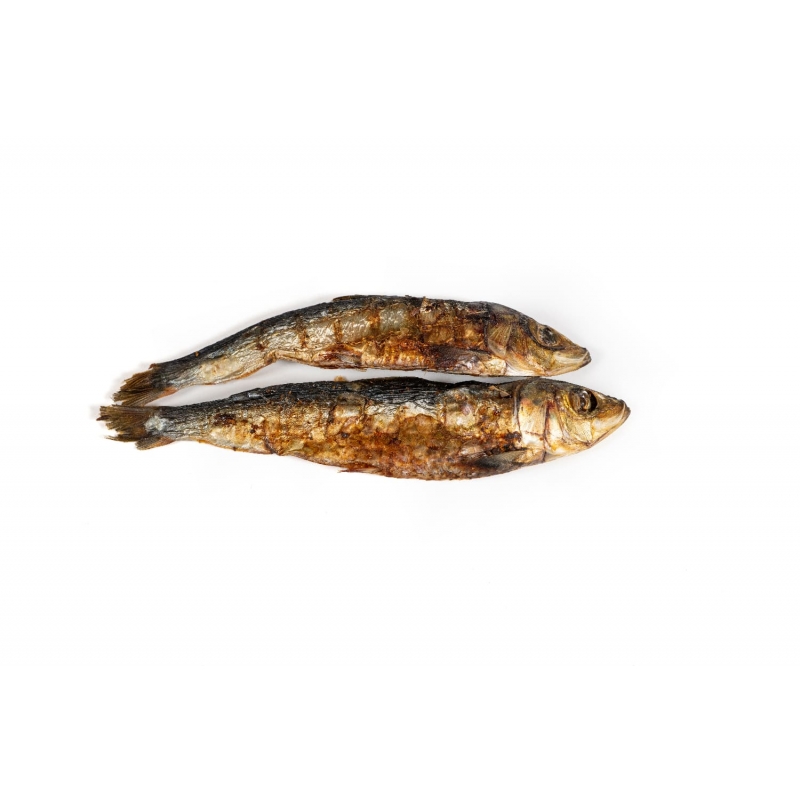 Bocados naturales de sardina deshidratada para perros y gatos, fuente de Omega 3, calcio y proteínas, ideales como premio nutritivo de fácil digestión.