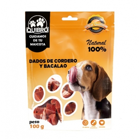 Los dados de cordero y bacalao para perros son un snack natural elaborado con una combinación seleccionada de cordero, hígado de cordero y bacalao, pensada para ofrecer un premio sabroso y fácil de masticar. Su formato en dados resulta muy práctico para el día a día y encaja genial como recompensa puntual.