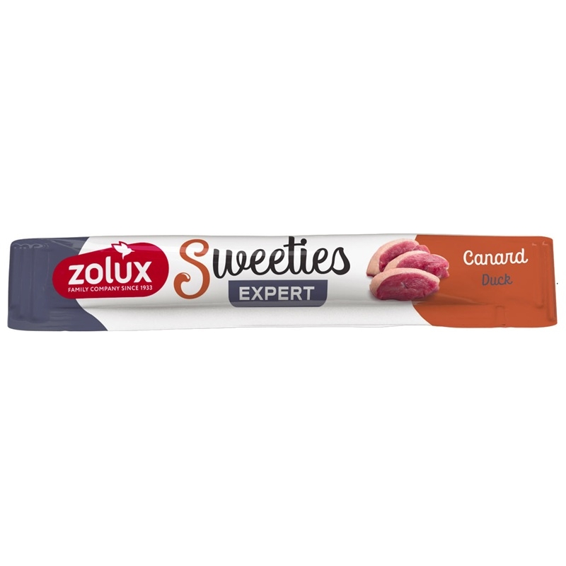 Gracias a su formato en sobres individuales, el Zolux Sweeties de Pato es fácil de servir directamente desde el envase, añadir al comedero o utilizar en una alfombra de lamido para una experiencia relajante y estimulante. Su receta sin colorantes, aromas artificiales ni azúcares añadidos garantiza una recompensa saludable y de gran calidad, apta incluso para perros esterilizados o con digestiones sensibles.
