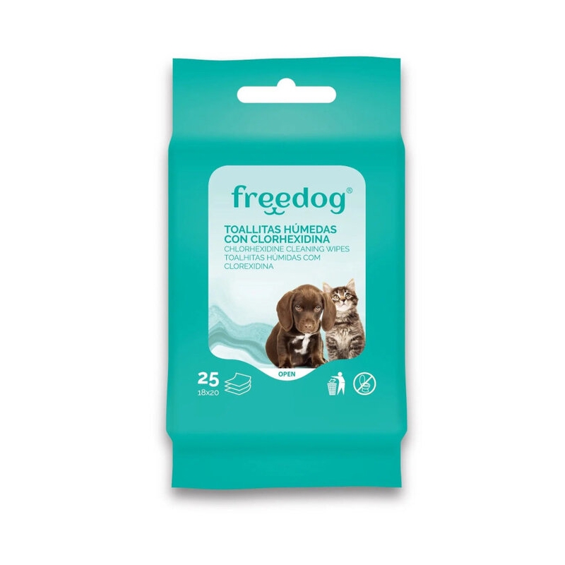 Las toallitas con clorhexidina limpian en profundidad y ayudan a controlar bacterias y hongos, proporcionando higiene sin agua. Suavizan la piel y aportan brillo al manto.