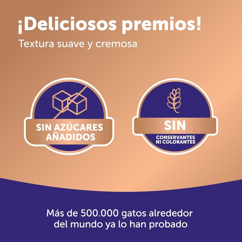 Su textura suave facilita ofrecerlo directamente del sobre, mezclado con la comida o como recompensa especial. Es apto para gatos y gatitos desde las 12 semanas.