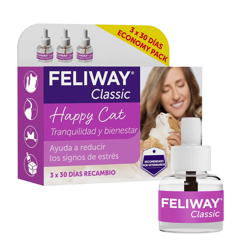 El Feliway Classic Recambio ha sido reconocido por la organización International Cat Care (ICC), dedicada a mejorar el bienestar felino. Numerosos estudios y testimonios han demostrado que Feliway ayuda a los gatos a estar más relajados, orinar y rascar en los lugares apropiados, y adaptarse mejor a los cambios en su entorno.