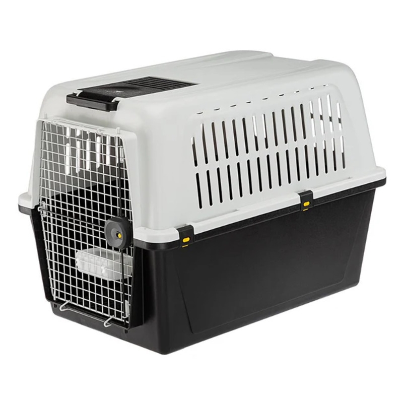 El transportín para perros Atlas es la mejor opción para asegurar que tu perro viaje de manera cómoda y segura. Con materiales resistentes y un diseño funcional, este transportín es perfecto para viajes en coche, tren, barco o avión. La puerta de acero plastificado y el sistema de cierre robusto garantizan una sujeción firme, mientras que las rejillas de ventilación aseguran un flujo de aire constante.